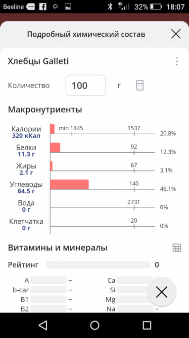 отказалась, когда увидела, что по калорийности и углеводам меня они