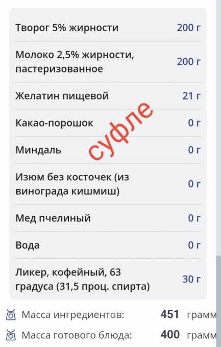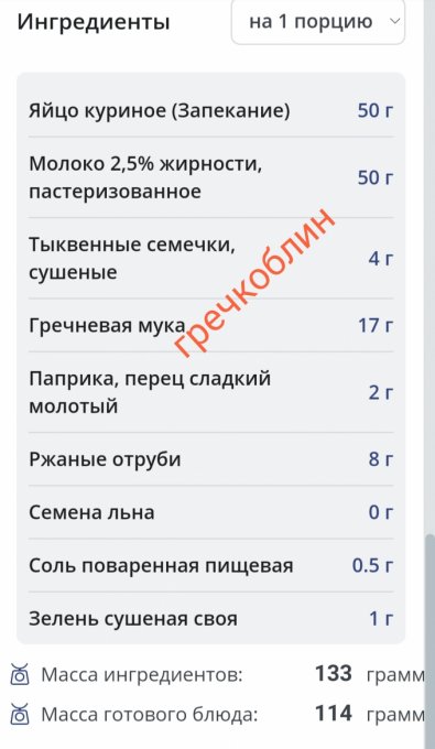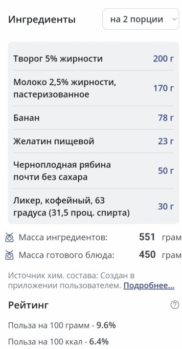 Калории | 128.9 кКал | 7.65% | |