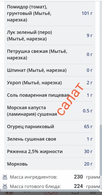 Итого за день | 2100 | 1154 | 85 | 42 | 101 |