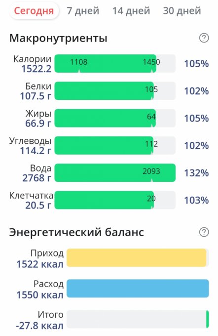 Итого за день | 2742 | 1458 | 102 | 62 | 112 |