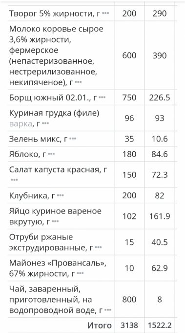 Итого за день | 3170 | 1430 | 101 | 63 | 109 |