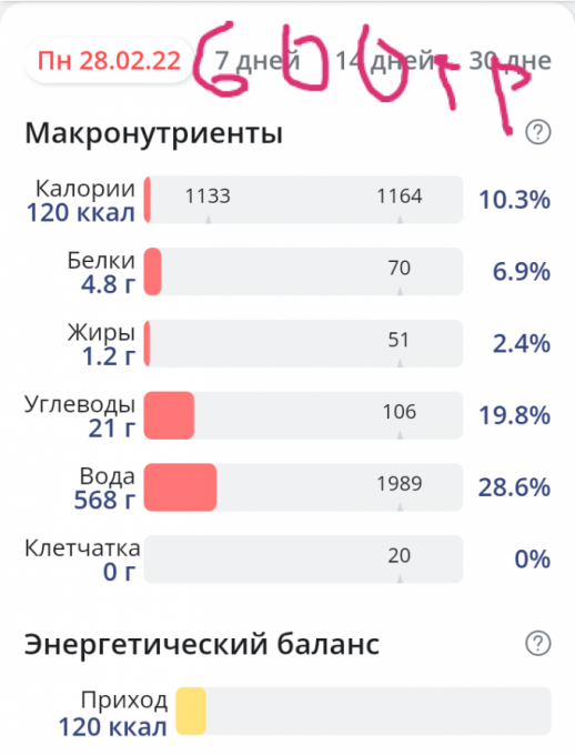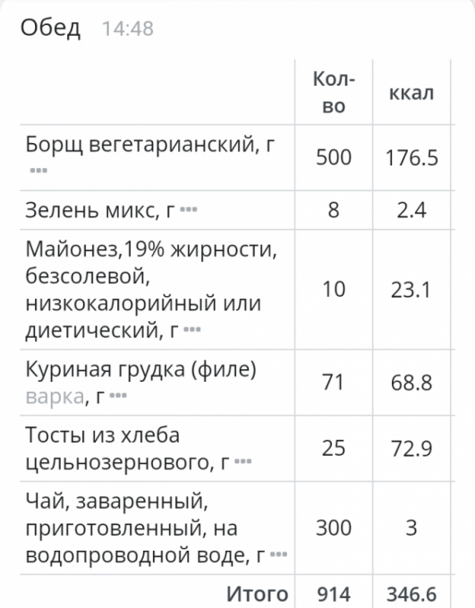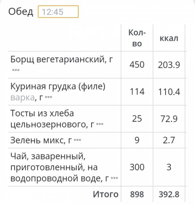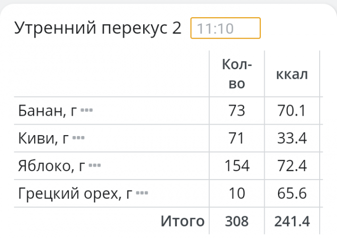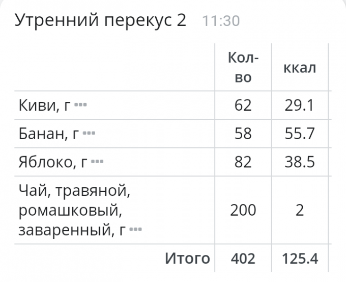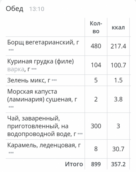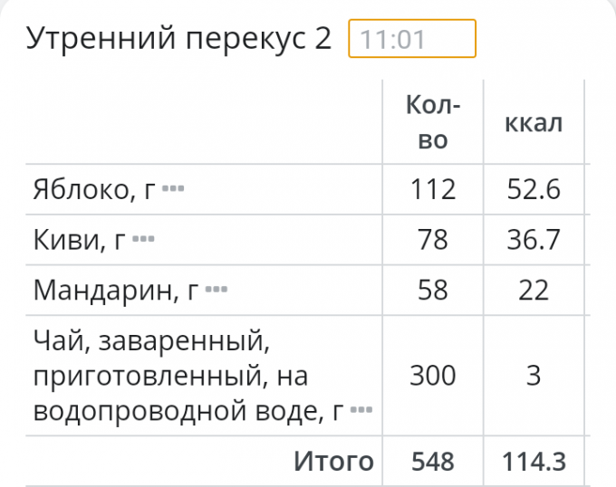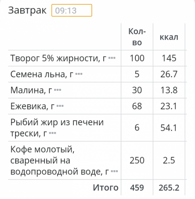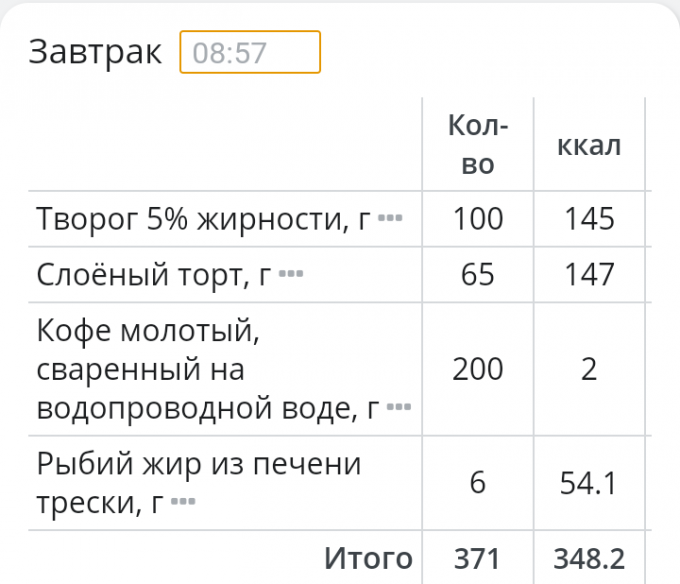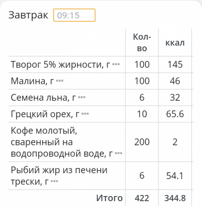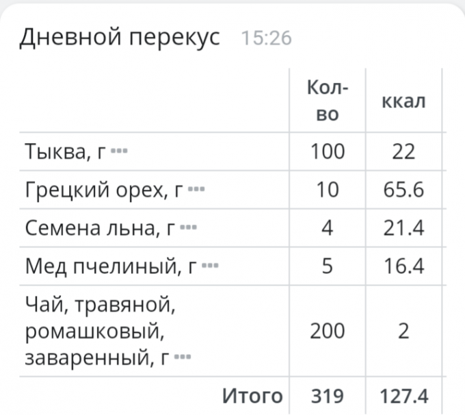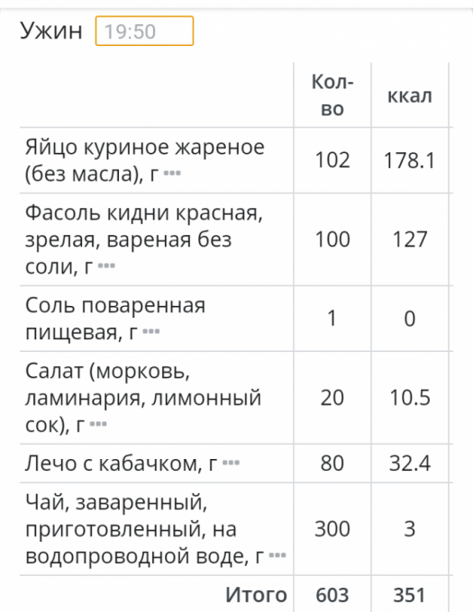 Итого за день | 2580 | 1156 | 74 | 47 | 99 |