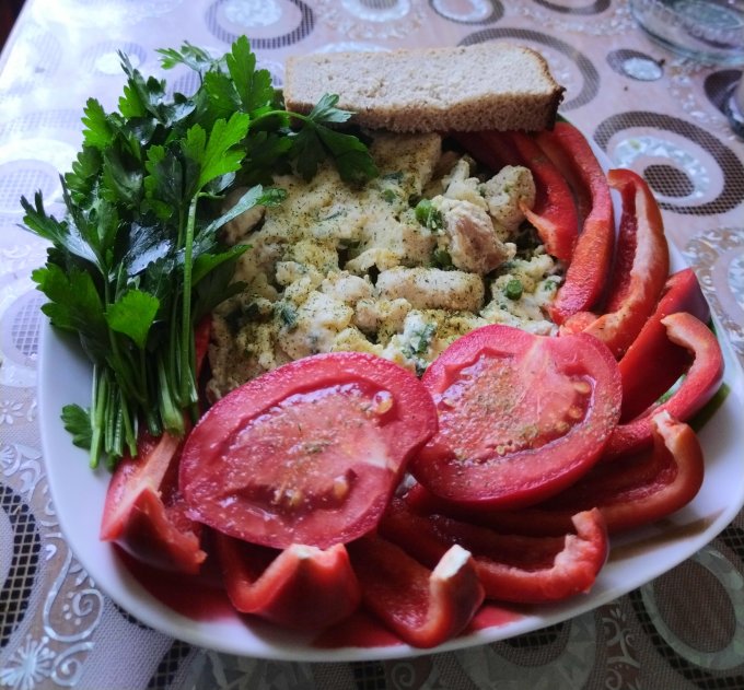 | Омлет с грудкой и овощами |