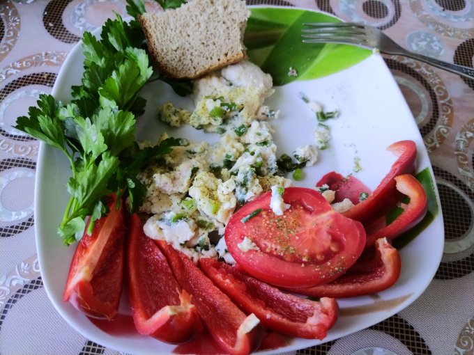 | Салат зелень/омлет/гречка/лимонный сок/масло |