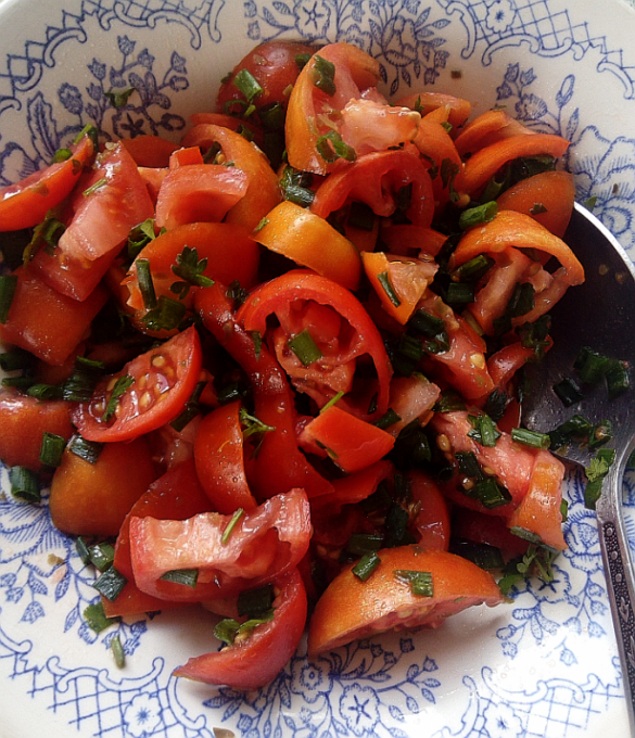 Купила свежий хлеб. Как я любила с ним салат из помидоров. Ломоть