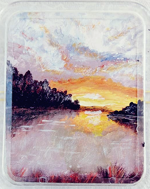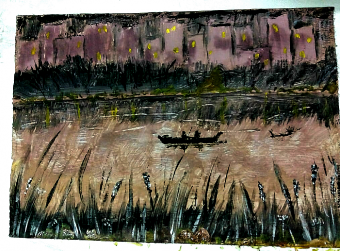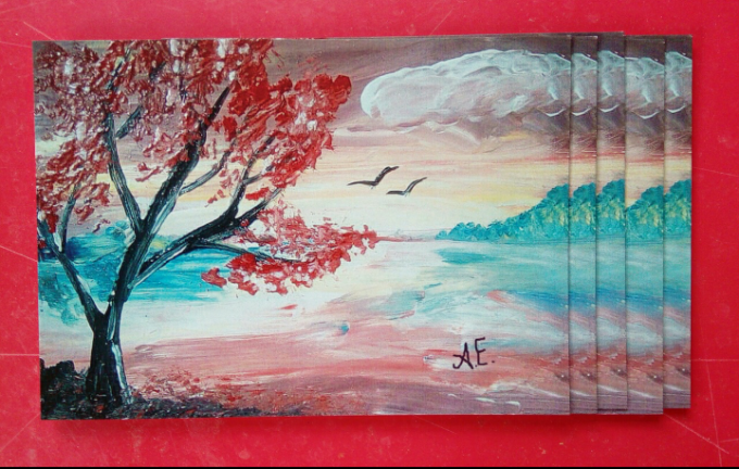 Этот пейзаж выполнен мной на куске моющихся обоев стеновыми