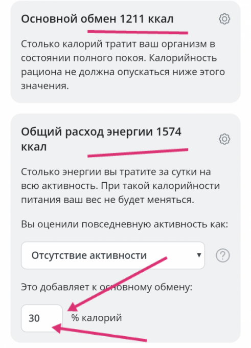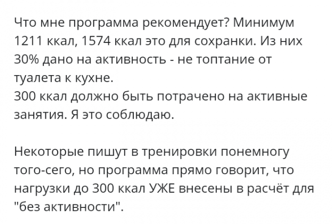 Что мне программа рекомендует? Минимум 1211 ккал, 1574 ккал это для