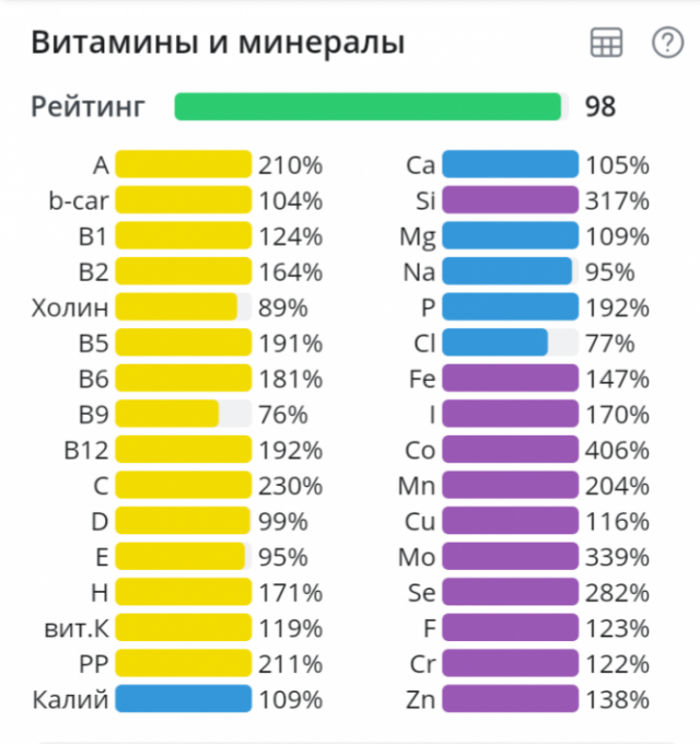| Кол-во | Калории | Белки | Жиры | Углеводы | |