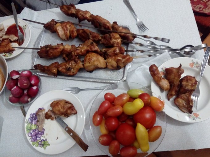 тепленькое заедали фруктой прямо с дерева)) и руки не особо мыли))