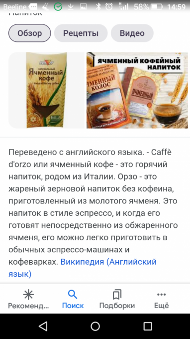 Заменитель кофе, напиток из злаков, порошок, приготовленный на воде |