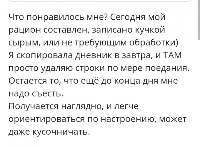 Что понравилось мне? Сегодня мой рацион составлен, записано кучкой