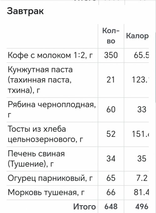 | Кол-во | Калории | Белки | Жиры | Углеводы | |