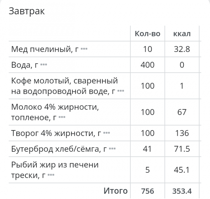 | Кол-во | Калории | Белки | Жиры | Углеводы | |