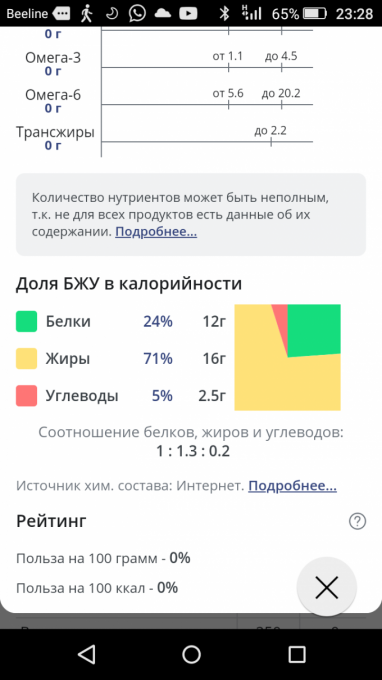 | Кол-во | Калории | Белки | Жиры | Углеводы | |