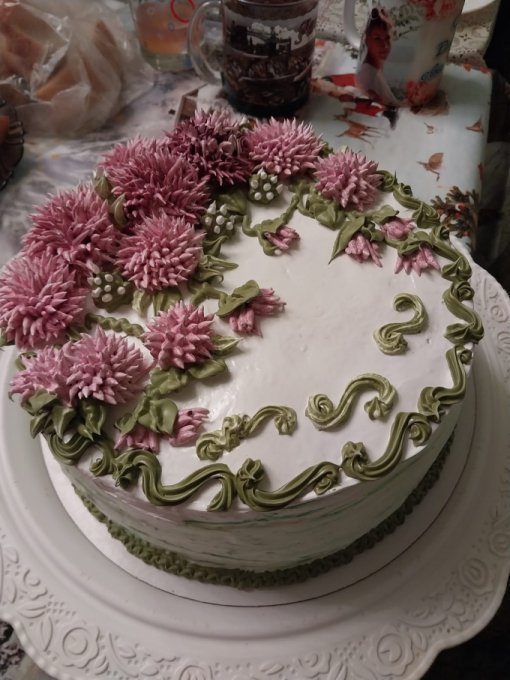 Хочу рыбу, жаренную с корочкой. Обошла все  близлежащие магазины, ничего в продаже приличного из рыбы нет, даже минтая нет, пришлось купить окорочка куриные и приготовить в духовке. В субботу были в гостях на ДР к зятю ходили, я как обычно с тортом, благо выходные начались в пятницу, поэтому испекла, собрала и украсила еще накануне. Не смотря на свое кето, попробовала маленький кусочек, так как это был новый рецепт с яблочно-карамельной начинкой, для меня  торт показался слишком сладким. Все кто ел, очень хвалили, для них сладость нормальная. Такой вот осенний торт с хризантемами.