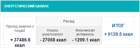 Рассчитанные программой энергозатраты: 28357,1 ккал