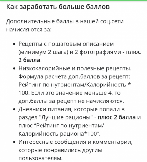 рациона хороший, то он попадает в лучшие и за это баллы дают. Баллы