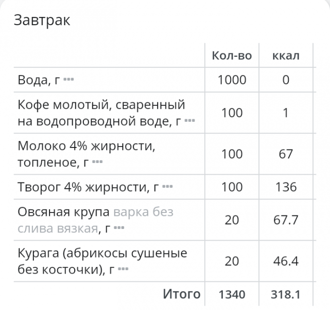 | Кол-во | Калории | Белки | Жиры | Углеводы | |
