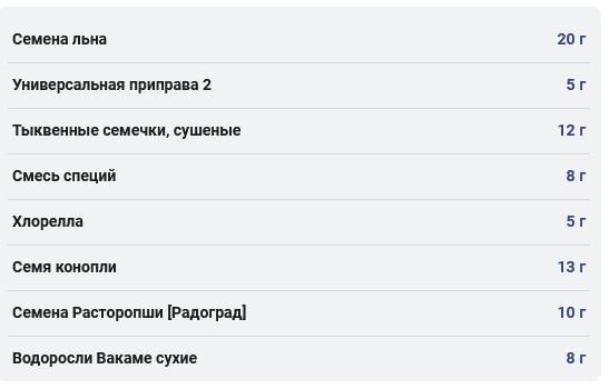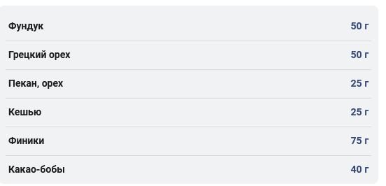| Кол-во | Калории | Белки | Жиры | Углеводы | |