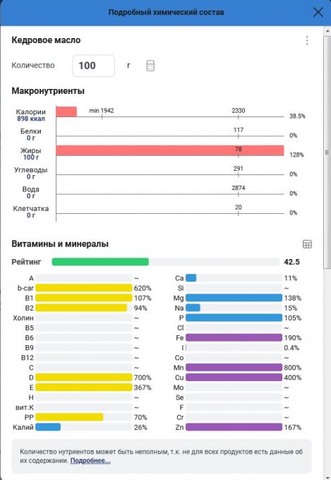 | Жиры | 31.7 г | 56.61% | |