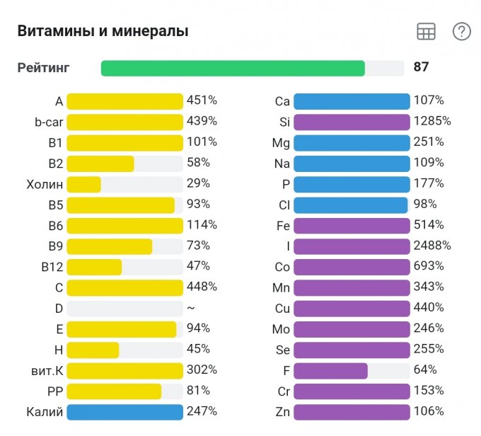 | Кол-во | Калории | Белки | Жиры | Углеводы | |
