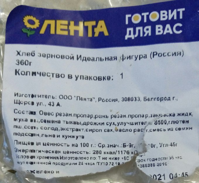 | Хлеб пшеничный из муки 1 сорта |