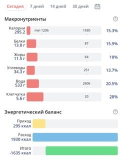 | Итого за день | 4320 | 1683 | 120 | 46 | 182 |
