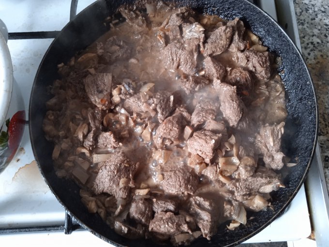 Протушила говядину в сметане+соевый соус+томаты перемолотые