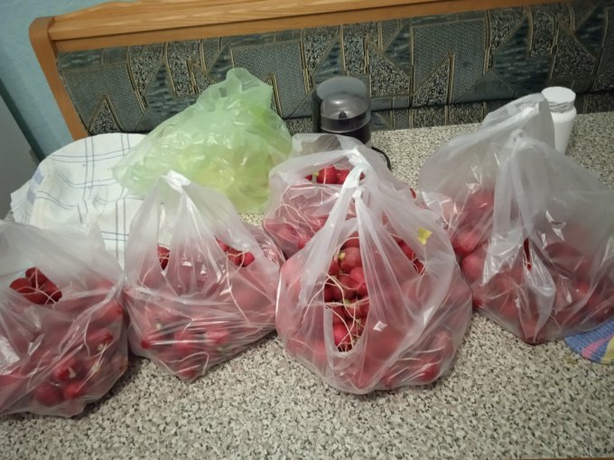 Вечером родители привезли урожай редиса (не весь, часть все же