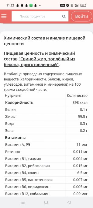 | Кол-во | Калории | Белки | Жиры | Углеводы | |