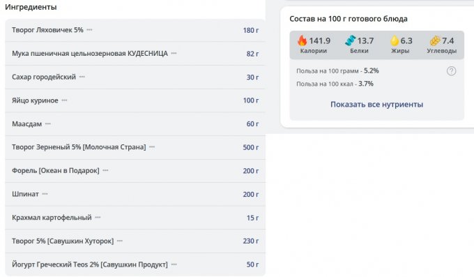 | Кол-во | Калории | Белки | Жиры | Углеводы | |