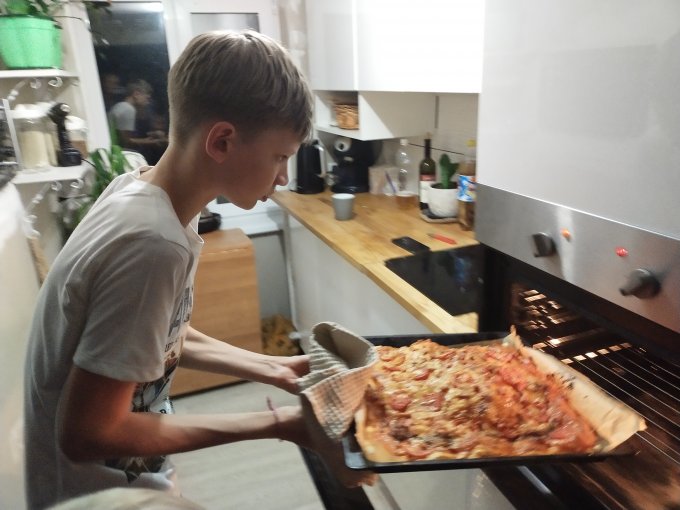 То чувство, когда твой старший сын первый раз готовит пиццу и пока ещё не подозревает чем ему это теперь грозит 😆😆😆😆😆