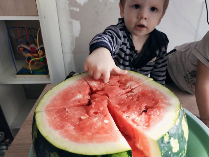 Купили сегодня огромный арбуз 🍉🍉🍉😏😍 считаем что первые месяцы осени это самое время их есть.....летом пластмассовые какие то.