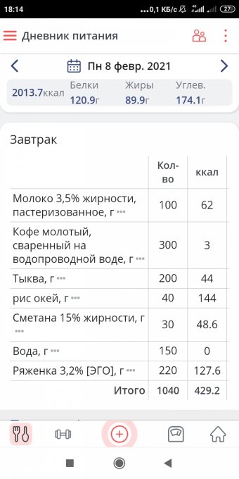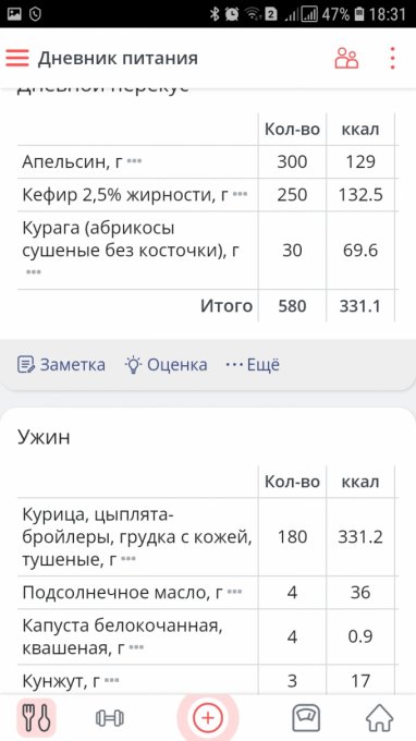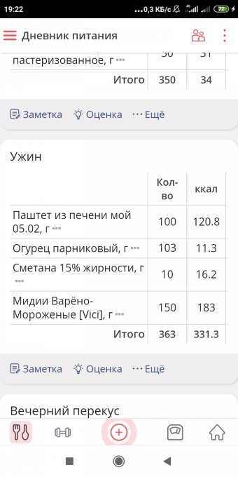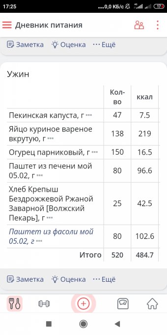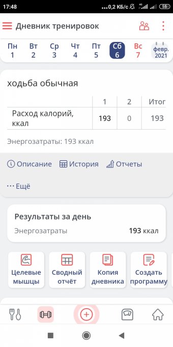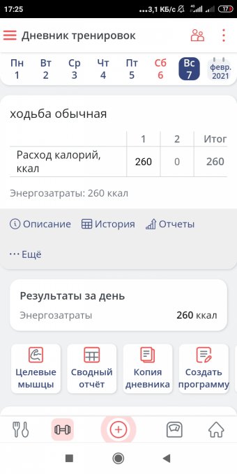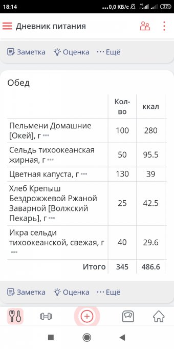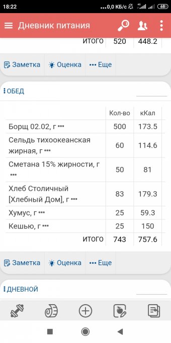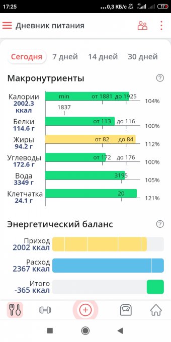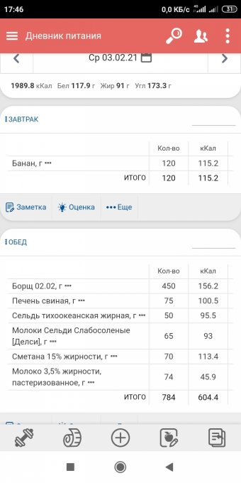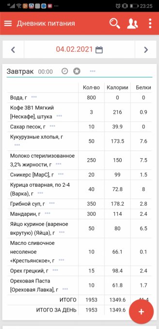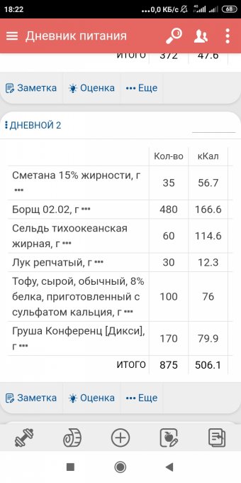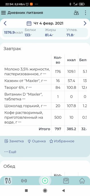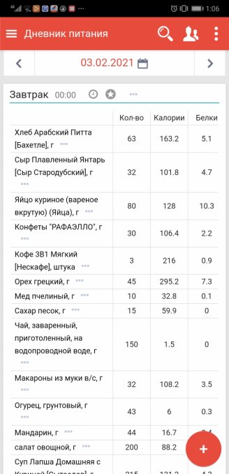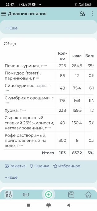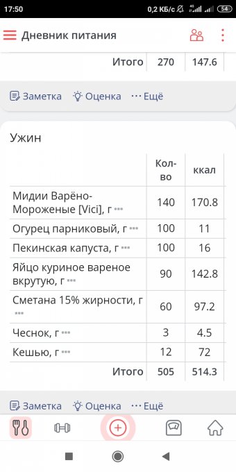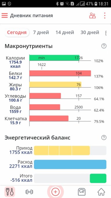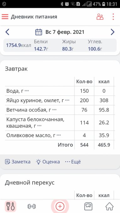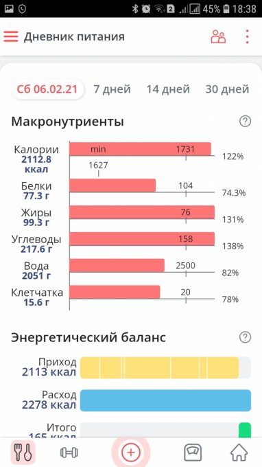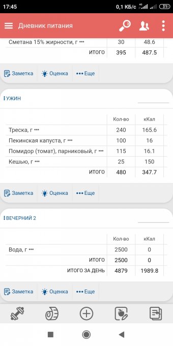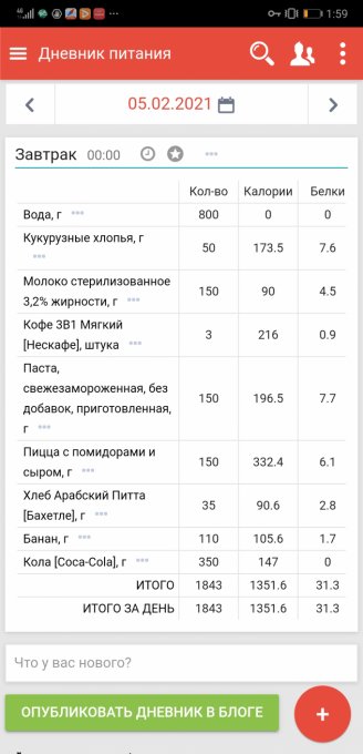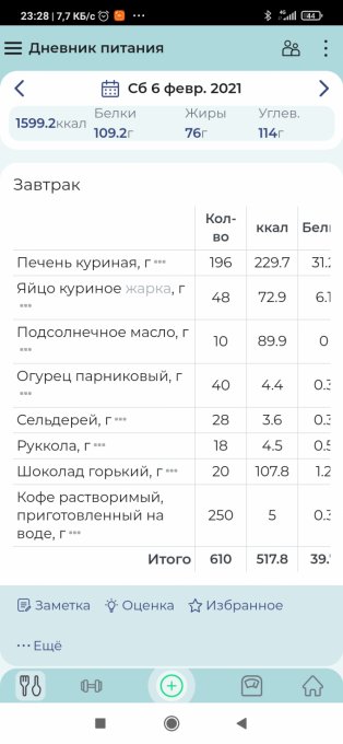 "дневник питания", выбираем текущий день, в правом верхнем углу