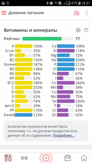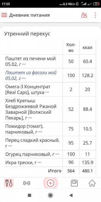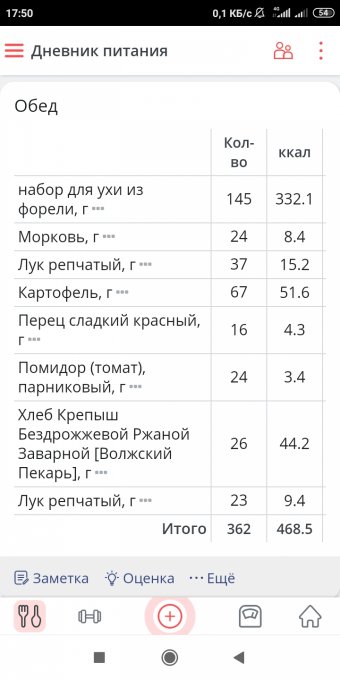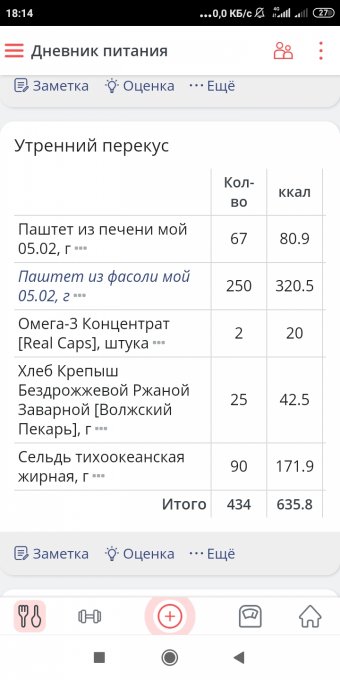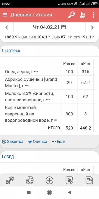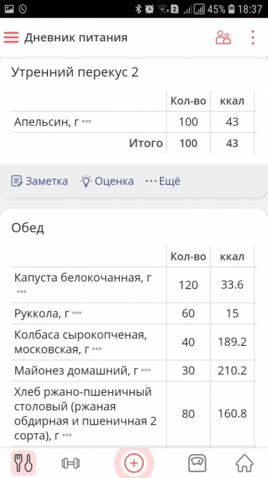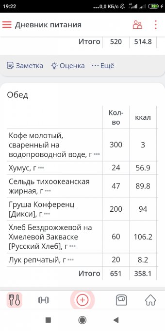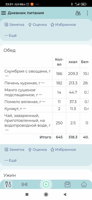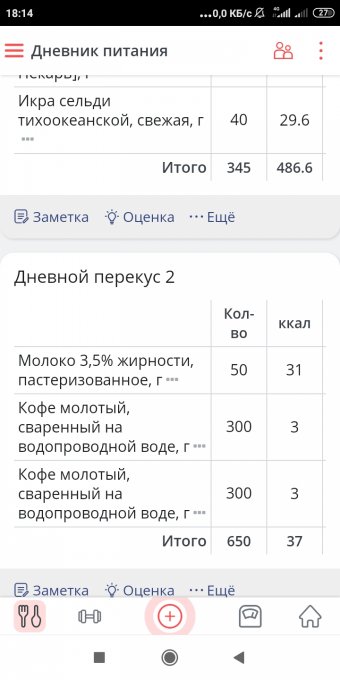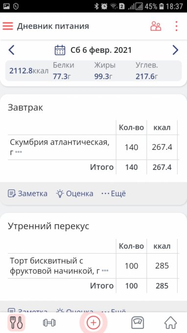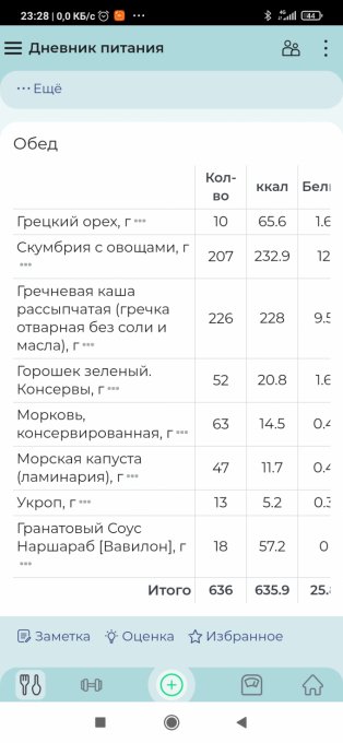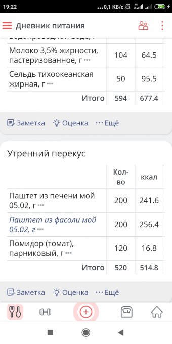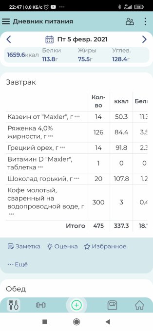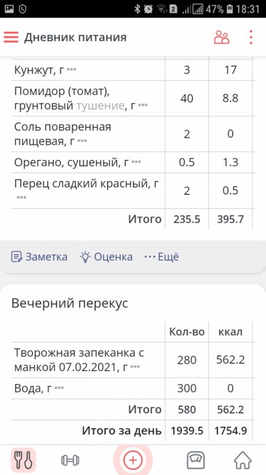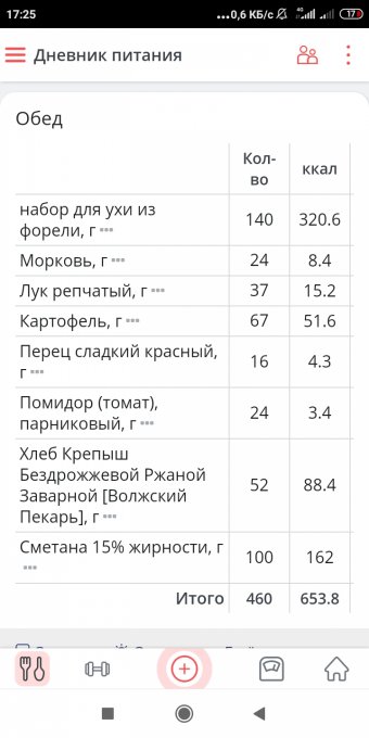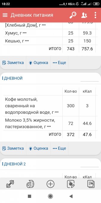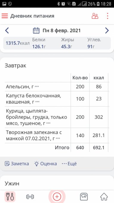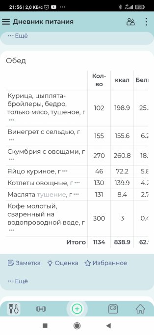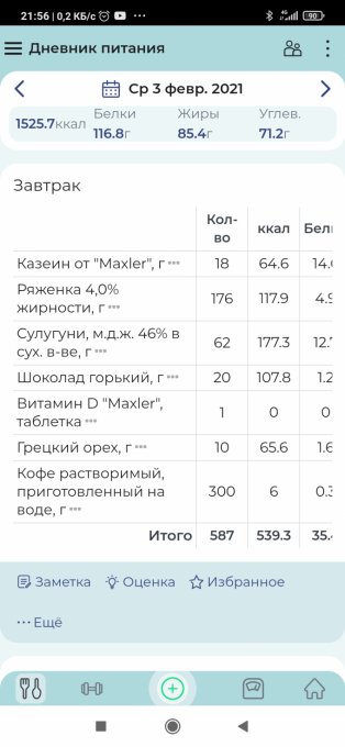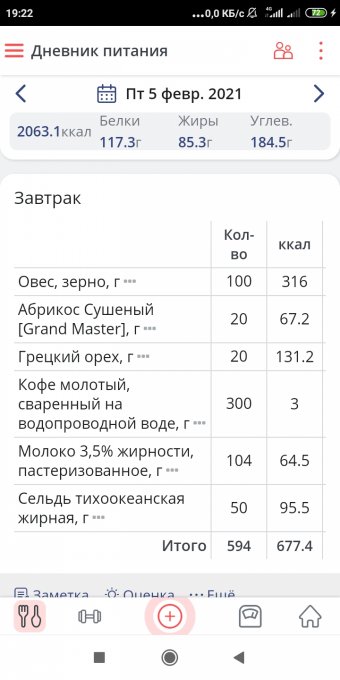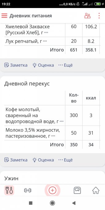 "дневник питания", выбираем текущий день, в правом верхнем углу