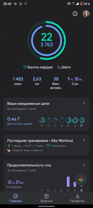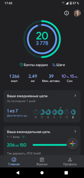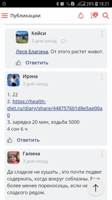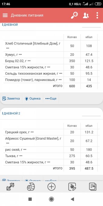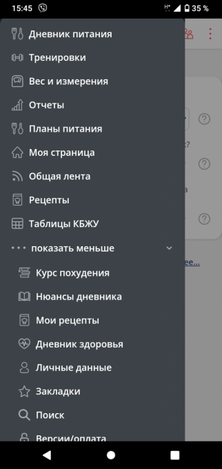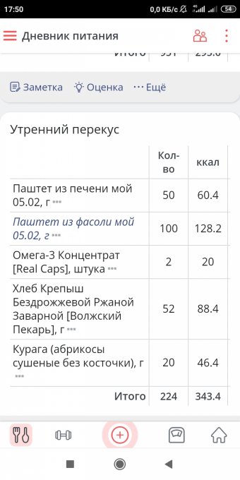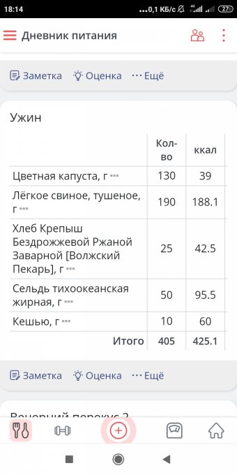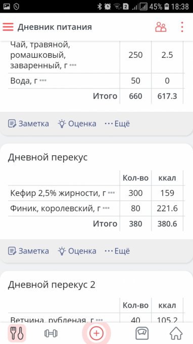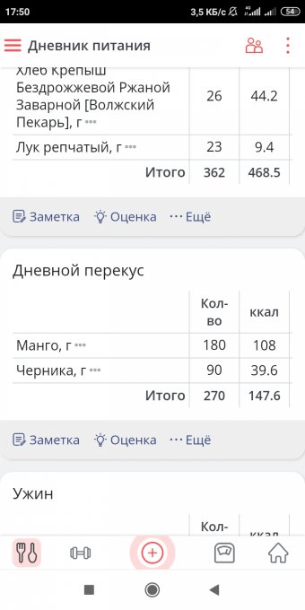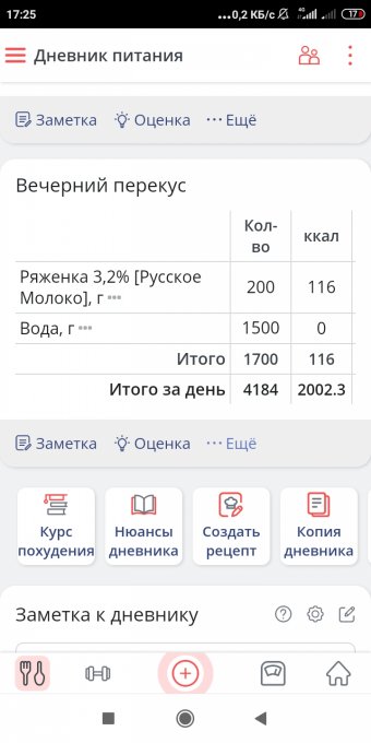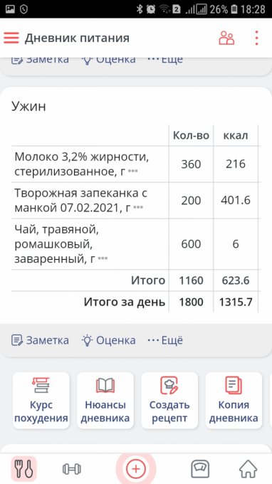 2. Ссылка на дневник питания за текущий день (открываем раздел