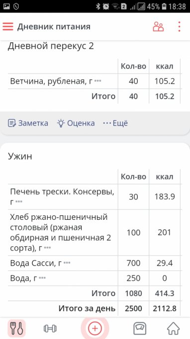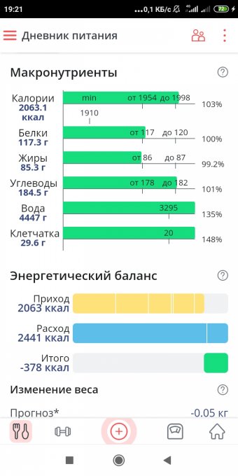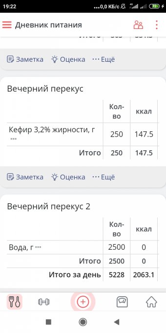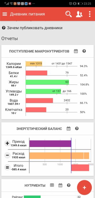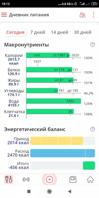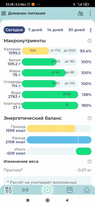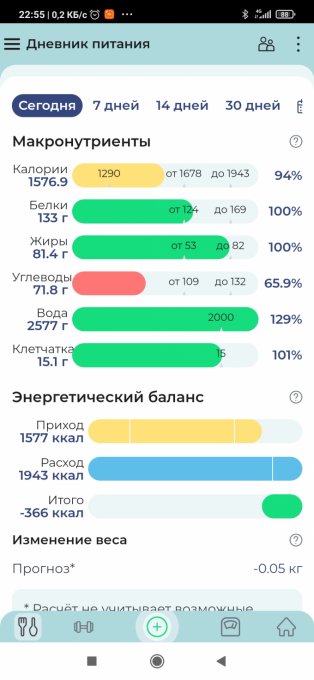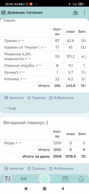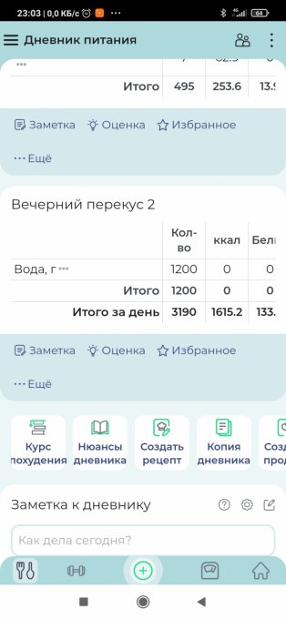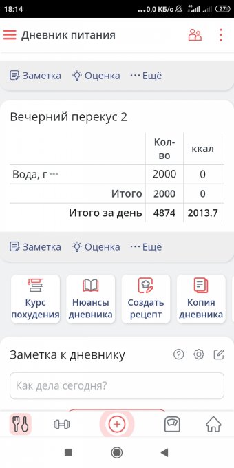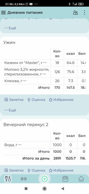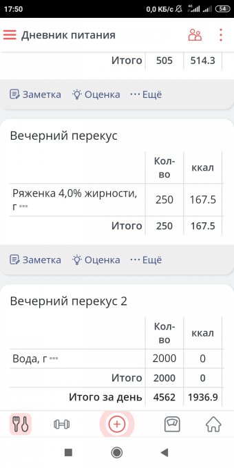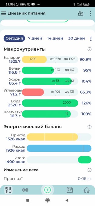 Перед отчетом обязательно внести данные по воде в свой рацион.