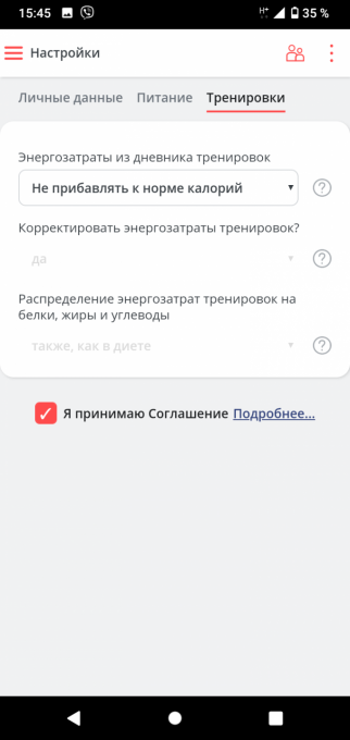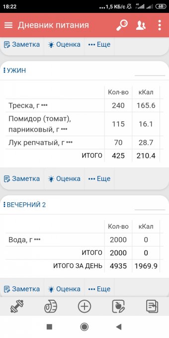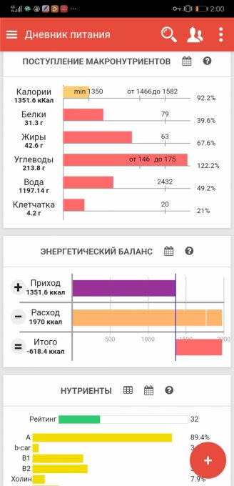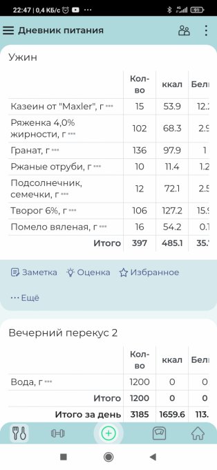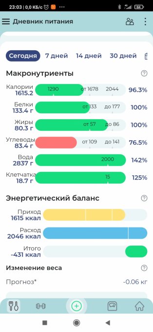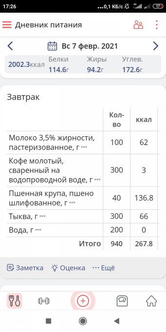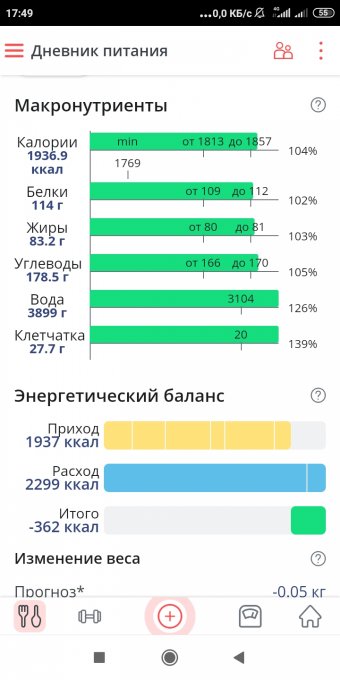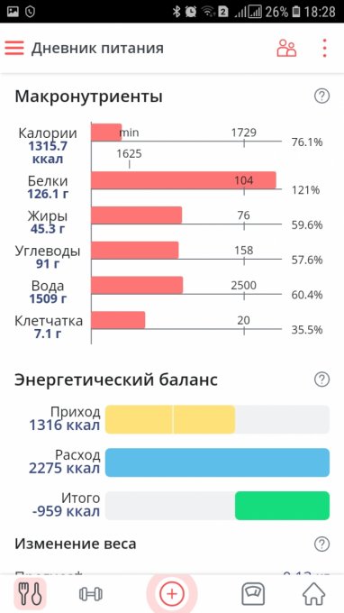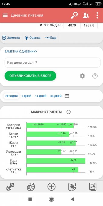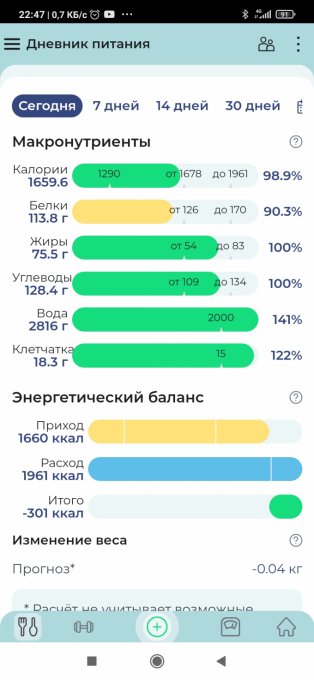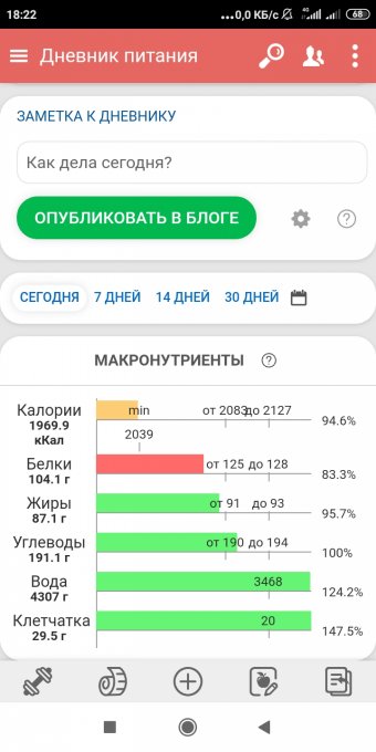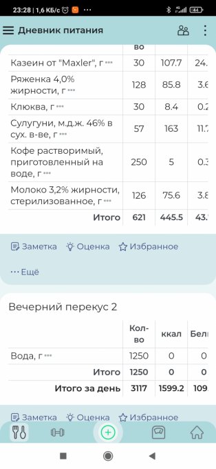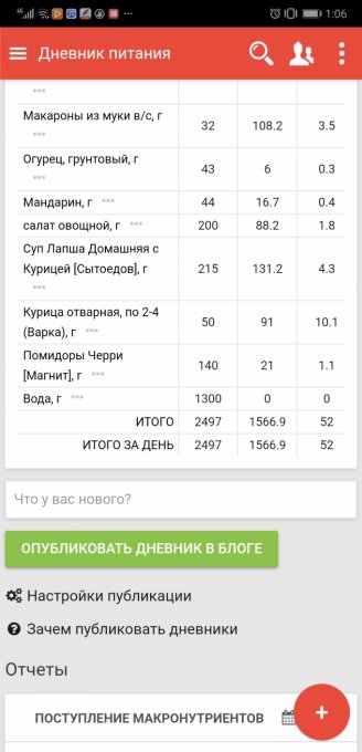 Перед отчетом обязательно внести данные по воде в свой рацион.