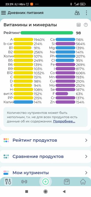 рекомендованное количество 500гр/неделю. В зеленой графе прописан