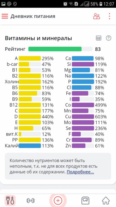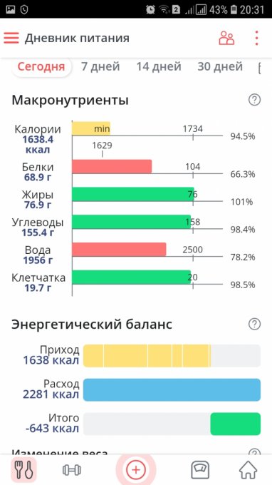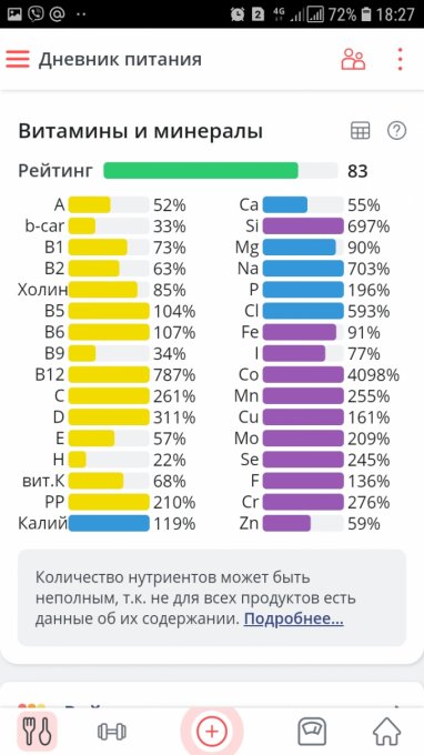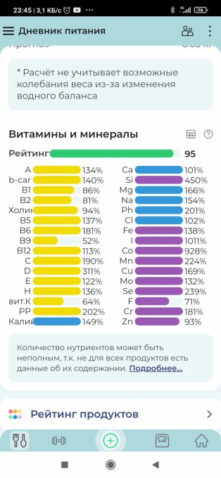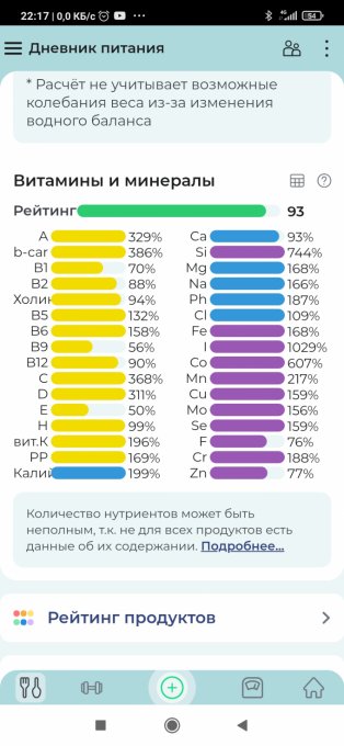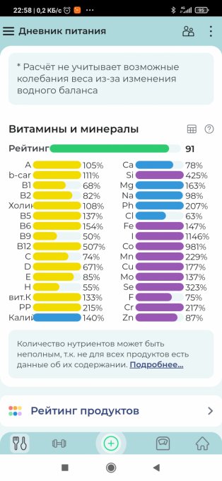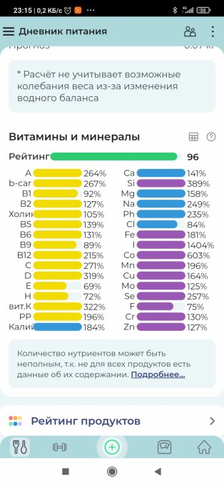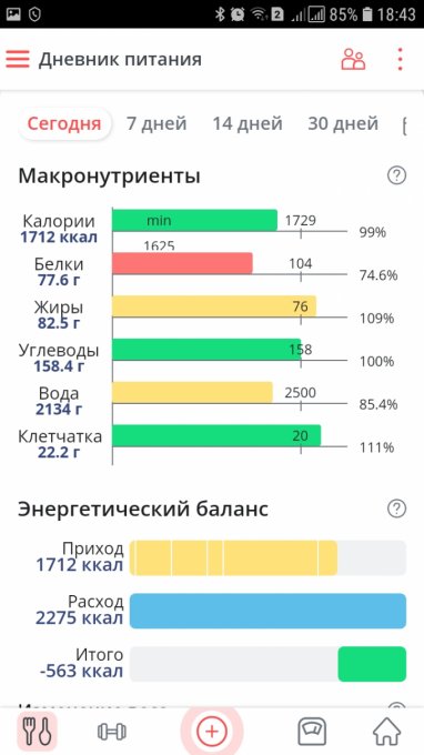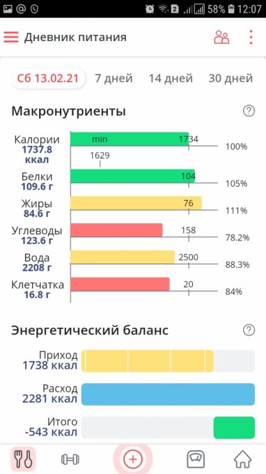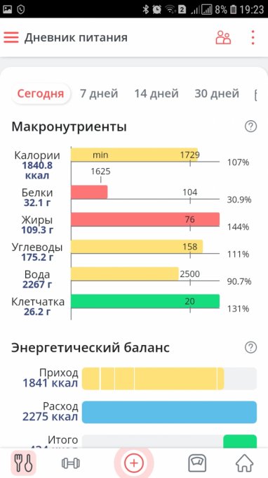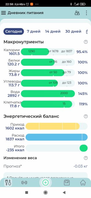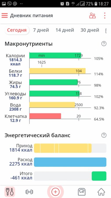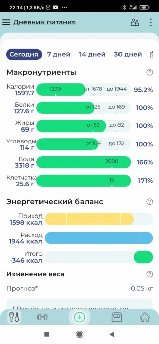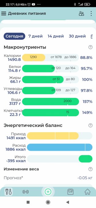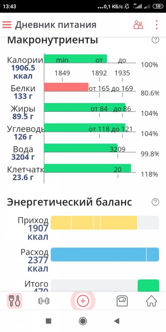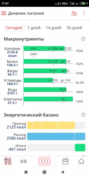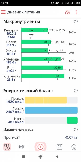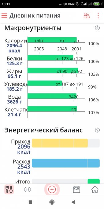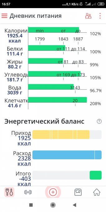 идут дела с соблюдением коридора по ккал, клетчатки, воды и