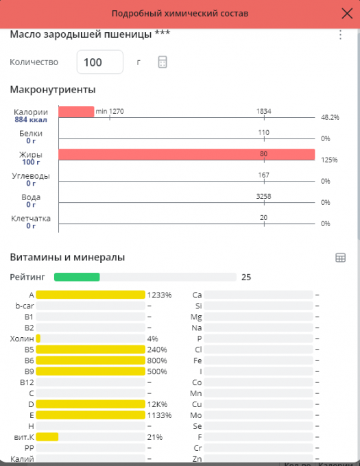 | Кол-во | Калории | Белки | Жиры | Углеводы | |