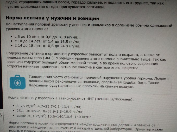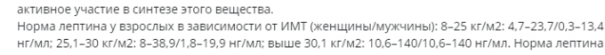 Норма лептина у взрослых в зависимости от ИМТ