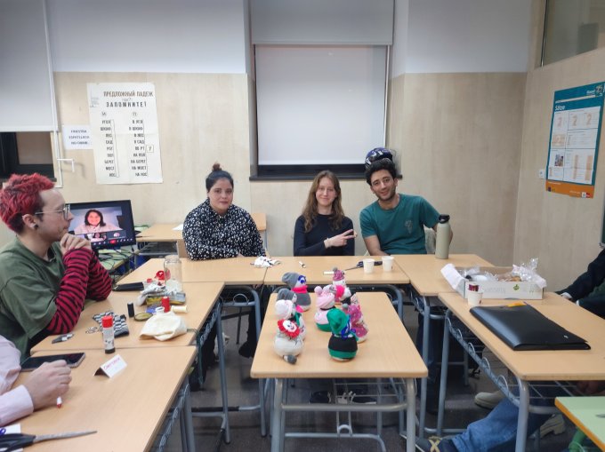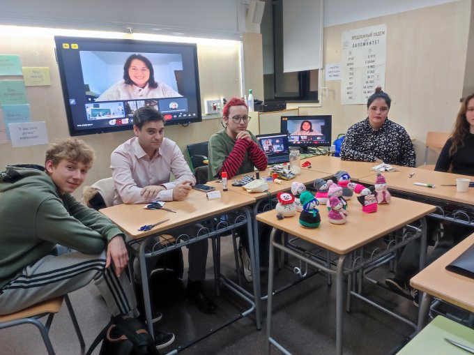 У нас последние уроки проходят перед каникулами. Поэтому они нестандартные. В прошлом году, благодаря многим из вас, мы беседовали о настоящих новогодних столах в РФ и Беларуси. А в этом году мы попили чаю с русскими сладостями и настоящая русско-белoрусская мастерица по "телемосту" провела урок рукоделия! Вот что у нас получилось: