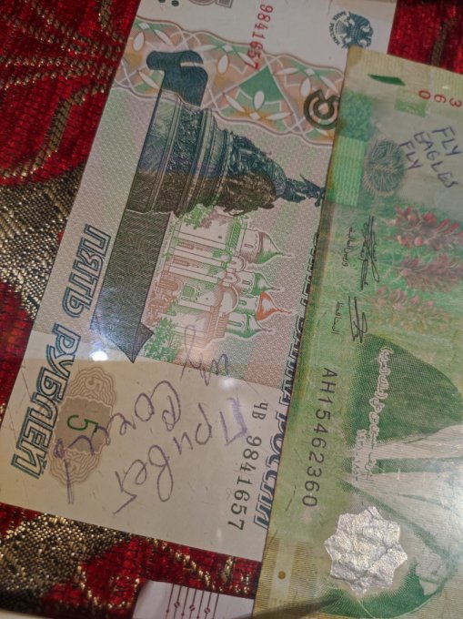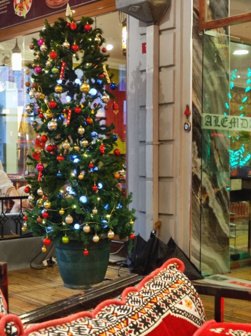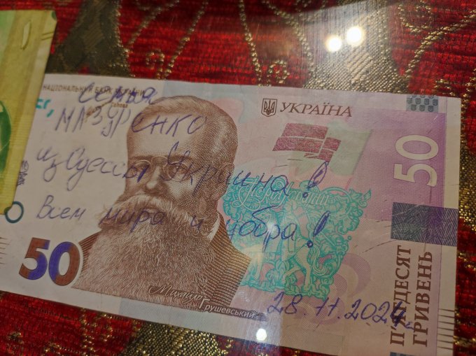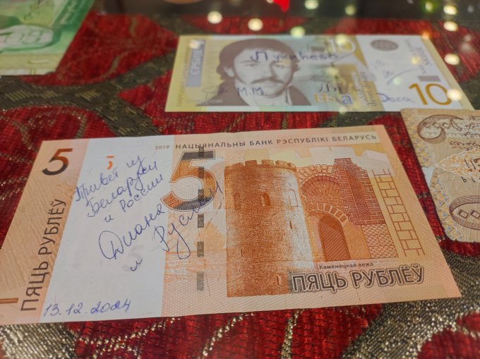 В кафе, стол "украшают" подписанные купюры. Интересно было читать приветы из разных стран. Всех с наступающим!