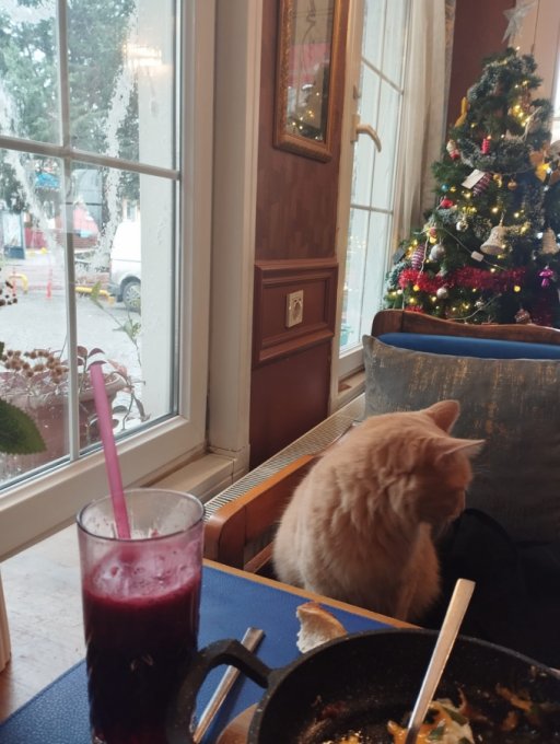 Котик пришел позавтракать со мной.