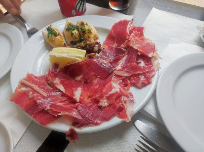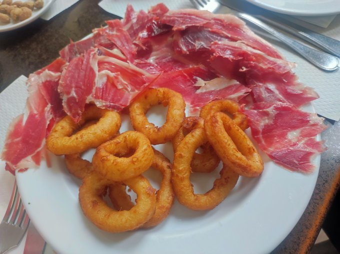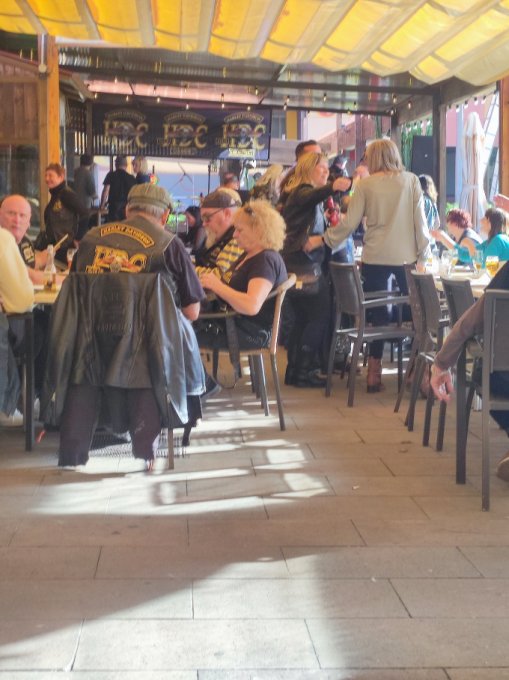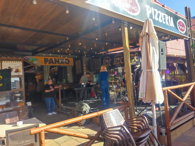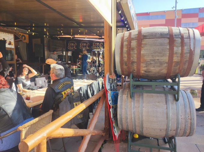 Поехали на выездной завтрак и недельную закупку продуктов с мужем и дочерью. Попали в кантри-клуб на какой -то праздник харли-девидсон. Пожилые байкеры и байкерши большой толпой организовали "вермут" под живой рок -н -рол и соул. В Испании вермутом называют апперитив, то есть перекус часов в 12, перед обедом, чтобы аппетит раззадорить. При этом едят и пьют всё, что угодно, а не обязательно вермут.