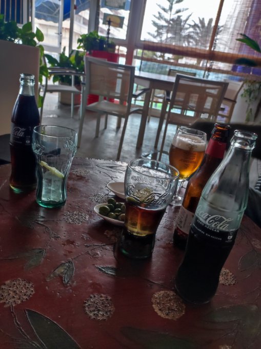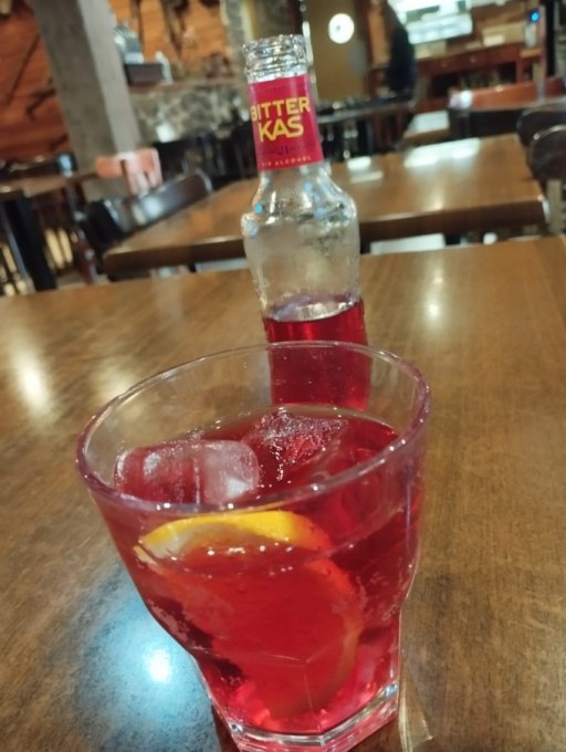 Мы подсели к ребятам послушать музыку, ну и позавтракали в их стиле, теперь и обедать не надо На картинке Биттер Кас, испанский безалкогольный напиток популярный в 60-е. Верный признак поколения.