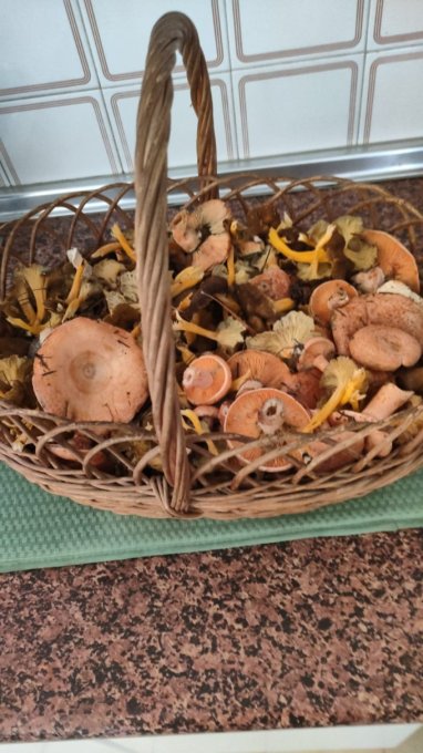 Наконец-то мужу удалось собрать и рыжики! Прислал фото с дачи, очень горд!