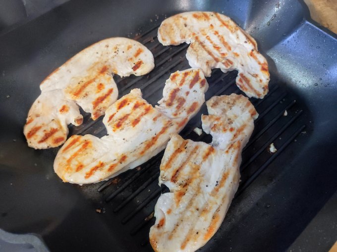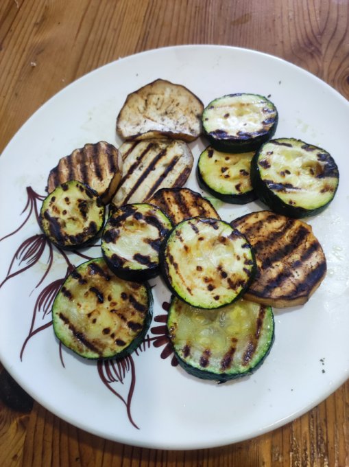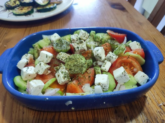 Обед: гриль овощи и мясо, салат с козьим сыром.