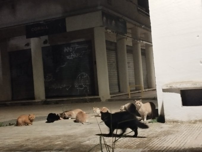 И вот вчера она услышала истошный кошачий вопль почти что в саду к нас. Артемиску нашла на дереве в стрессе и перепуганную, а старшей кошки Пили нигде не было. Поискала дома и на террасе, прошлась по всей улице, заглядывая под машины и в сады к соседям, обошла виноградник и вокруг...то же самое проделали я и муж поочередно, приехав с работы. И вот в половине часу ночи, когда мы безвольно сидели и молчали, кошачья мадам соизволили явиться в спокойствии и здравии...Где была, не сообщает. Сегодня взаперти, так как вся семья в стрессе. Кошке Пили 13 лет, Мейн Кун. По молодости ходила на охоту, носила с поля мышей, птенцов и крольчат. Теперь а основном спит на диване или в саду. Но дочь подглядела, что ночью Пили выходит на собрание к уличным кошкам. Не дерется, сидит с ними. И вот вчера, куда, спрашивается, ходила на пять часов?! На фото уличные кошки, но не с нашей улицы. У нас столько нет. Эти живут в зоне пляжа, между кэмпингом и охраняемой природной зоной, им там привльно. У нас в городе работает программа контроля популяции уличных кошек. У них есть спец кормушки и их как-то стерилизуют. Хотя эта группа явно родственники между собой: много рыжих и черных.